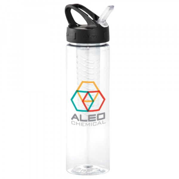 The Fruit Infuser 25-ounce Sports Bottle is a USA-made, BPA-free sports bottle with a twist-on lid and flip-top drinking spout. ::It also includes a twist-on fruit infuser lid to add flavor to your favorite drink and oz measurement markings are conveniently located right on the bottle. ::It's phthalate-free, non-toxic, lead-free and meets FDA Requirements. ::Hand wash only and follow any included care guidelines.