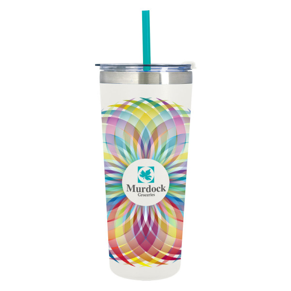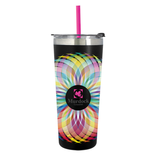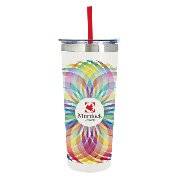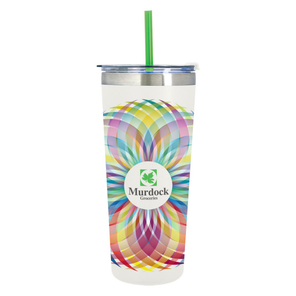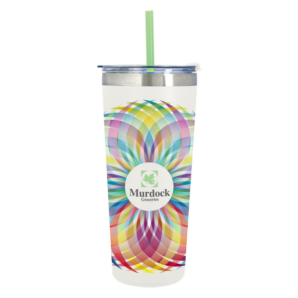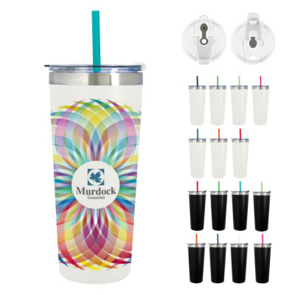 - Snap-On, Spill-Resistant Flip Top Lid with Straw Hole and Matching 9 1/2" Straw