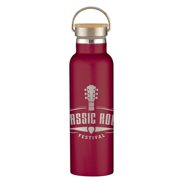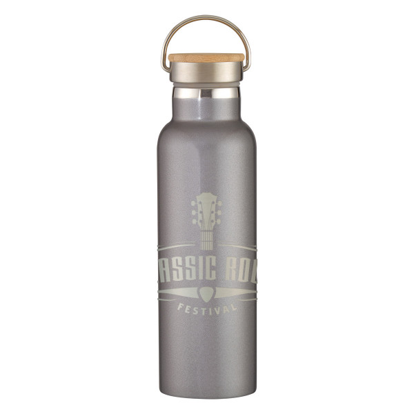 Full Laser Tipton Stainless Steel Bottle with Bamboo Lid - 21 oz.