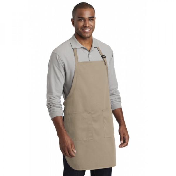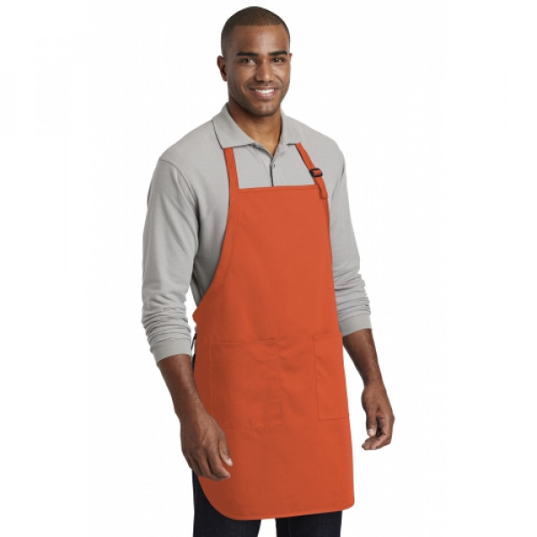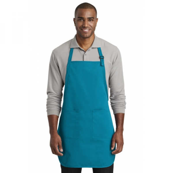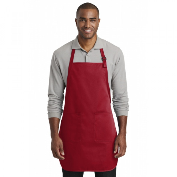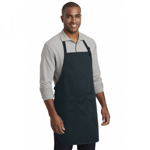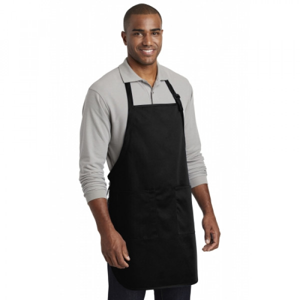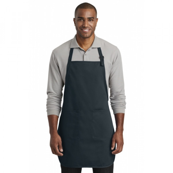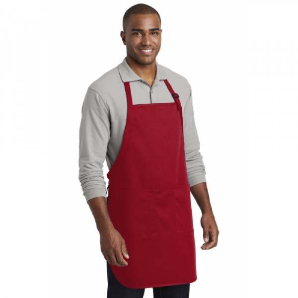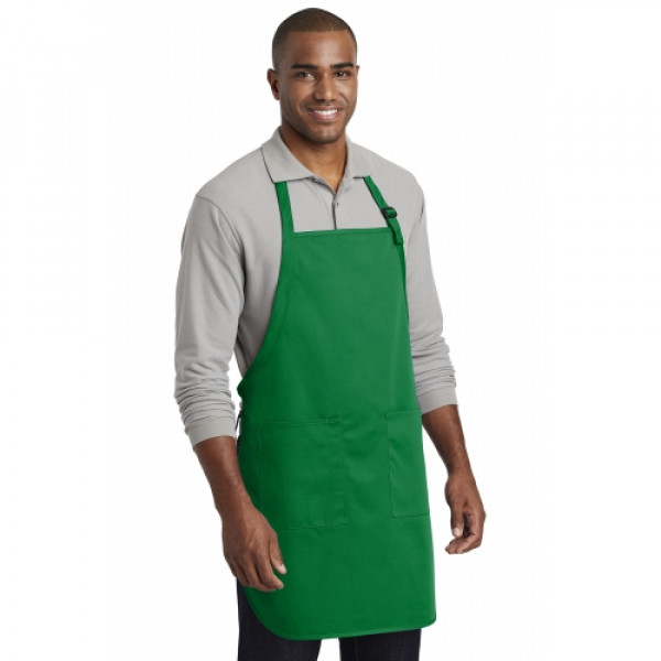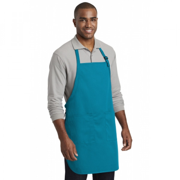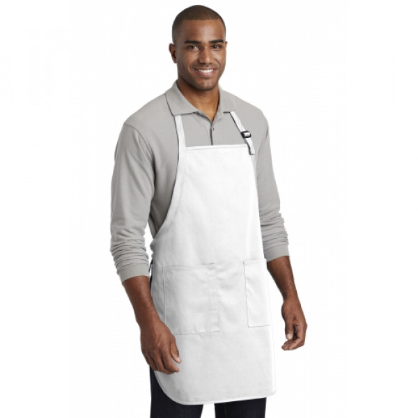 This durable, full-length apron provides ample coverage and has two pockets to keep tools and essentials organized. ::7-ounce, 65/35 poly/cotton twill::Adjustable neck strap::Two front patch pockets, pen pocket::Self-fabric ties::Color-coordinates with CP80, C914 and CP45 caps ::Measures: 22"w x 30"l