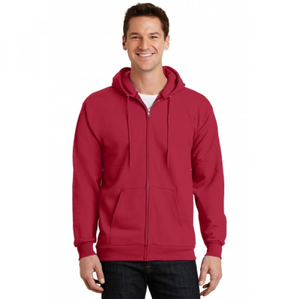 Nothing's better for chilling out than your favorite zip-up hoodieat a budget-friendly price.| 9-ounce 50/50 cotton/poly fleece Two-ply hood Dyed-to-match drawcord Set-in sleeves Front pouch pockets