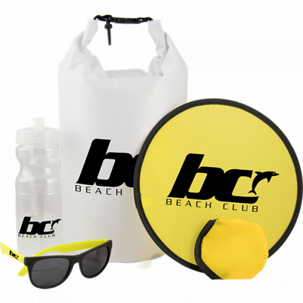 - ::Kit includes: DRYBAG10 10L waterproof dry bag, NS - naples sunglasses, FD - flying disc with pouch, CUBIE - Lip Balm, PB24 - 24 oz polyclear bottle"