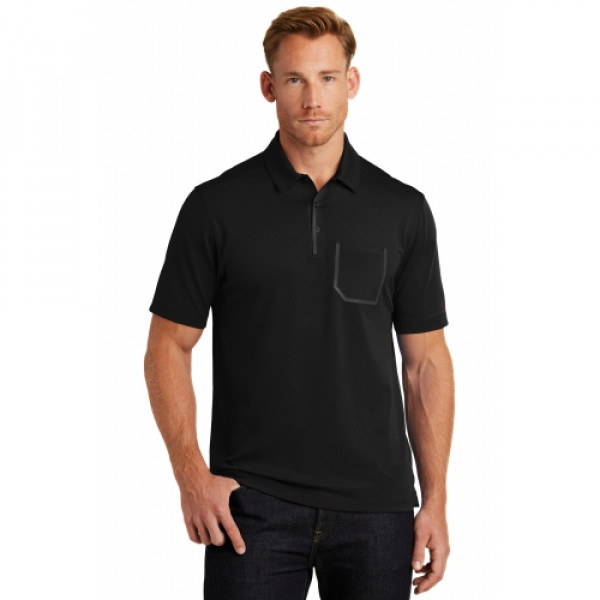 Only OGIO can fuse ultramodern welding details with comfortable stretch for a sharp, distinctive look.::5.9-ounce, 96/4 poly/spandex pique with stay-cool wicking technology::OGIO heat transfer label for tag-free comfort::self-fabric collar::OGIO stretch neck tape::black reflective, welded left chest pocket::set-in, open hem sleeves::black reflective O heat transfer on left sleeve::black reflective, welded 3-button placket with dyed-to-match, debossed O buttons::embossed OGIO on back right shoulder::black reflective, welded side vents