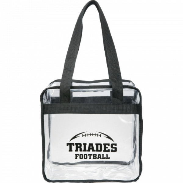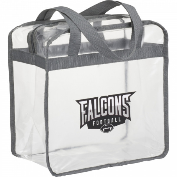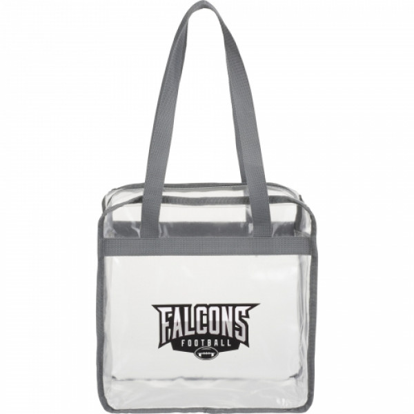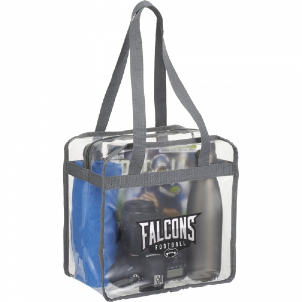 As part of Game Day Collection, this clear tote is perfect for fans packing their stadium and event day items safely. <br />::Also great for workplace safety. <br />::Zippered main compartment. <br />::Dual carry handles with 10" handle drop height. <br />::Note that if the bag is being carried into an NFL stadium, the NFL requires that logo sizes do not exceed 4.5" tall by 3.4" wide.