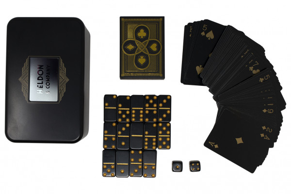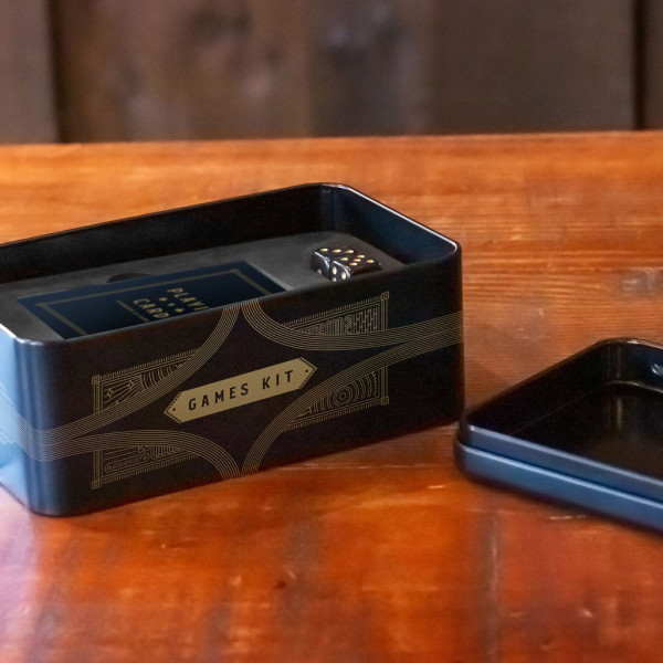 The Signature Collection Games Kit is a portable entertainment set designed to enhance your leisure time during travel or at home. Housed in a customizable gift tin, this kit includes luxe dominoes, dice, and playing cards, providing a variety of classic games in one convenient package. Its compact design makes it easy to bring along on road trips or flights, ensuring you have engaging activities no matter where you are. The Signature Collection Games Kit combines classic gaming essentials in a stylish and portable package, making it a perfect companion for your journeys or a thoughtful gift for friends and family.