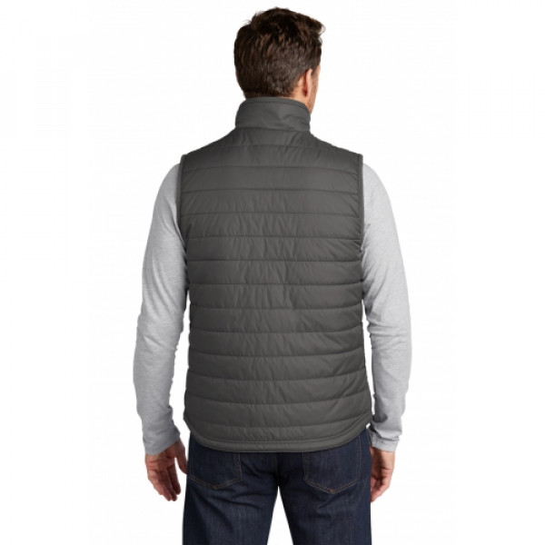 When it’s just cold enough to call for core warmth, this insulated vest has you covered as a lightweight, water-repellent layer.::1.75-ounce, 100% nylon Cordura® shell::Rain Defender® durable water repellent::Wind Fighter® technology tames wind::Nylon lining quilted to 100-gram polyester insulation::Reverse coil center front zipper::Zip-through cadet collar::Left chest map pocket with reverse coil zipper::Two hand pockets with hidden snap closures::Two interior pockets: one zippered, one hook and loop closure::Drawcord adjustable hem::Carhartt-strong, triple-stitched main seams::Drop tail::Carhartt label sewn on chest pocket