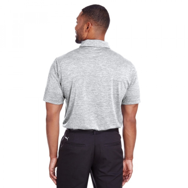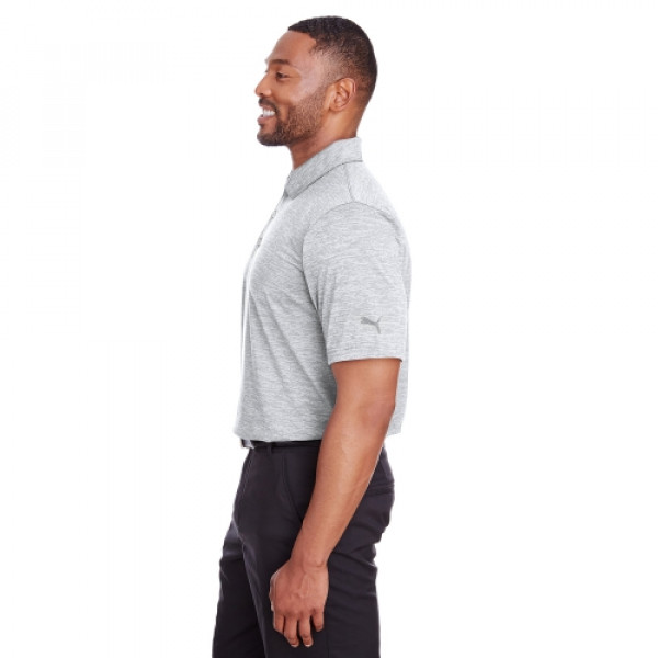 ::100% polyester::Space-dyed heather fabric::Moisture-wicking::Mechanical stretch::Ultra-lightweight::3 button placket::Siilcone Puma Cat logo on left sleeve