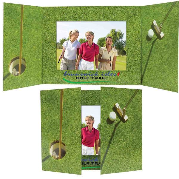 - Golf-themed folding photo mount designed to display tournament or event photos