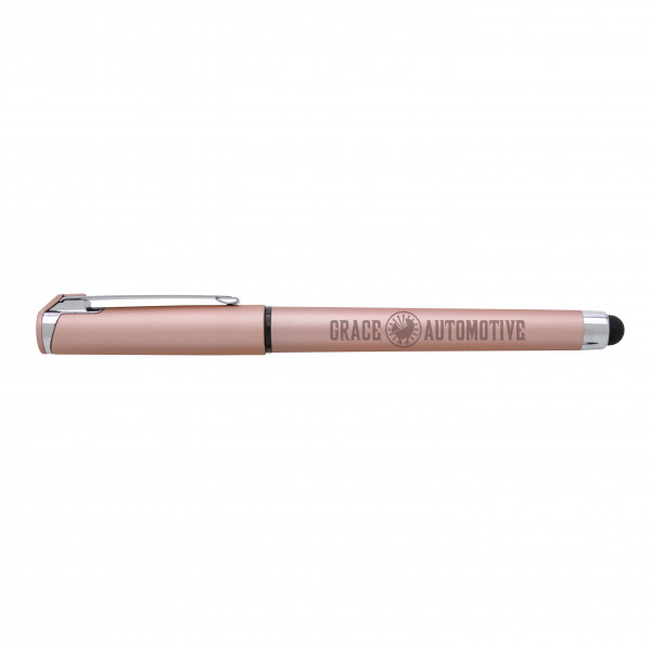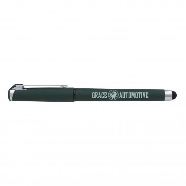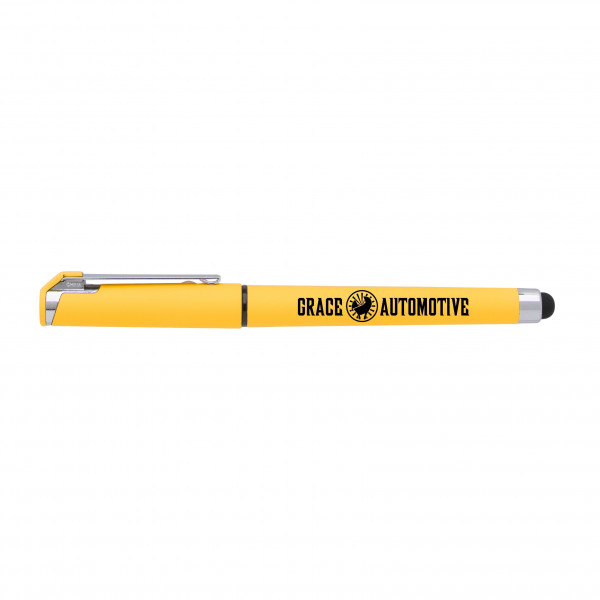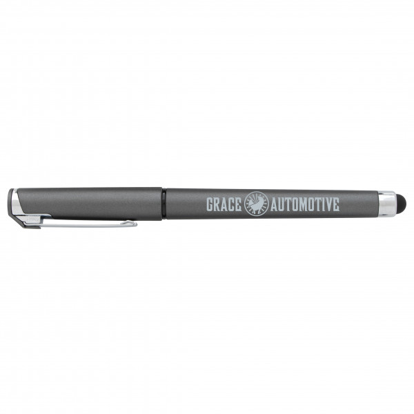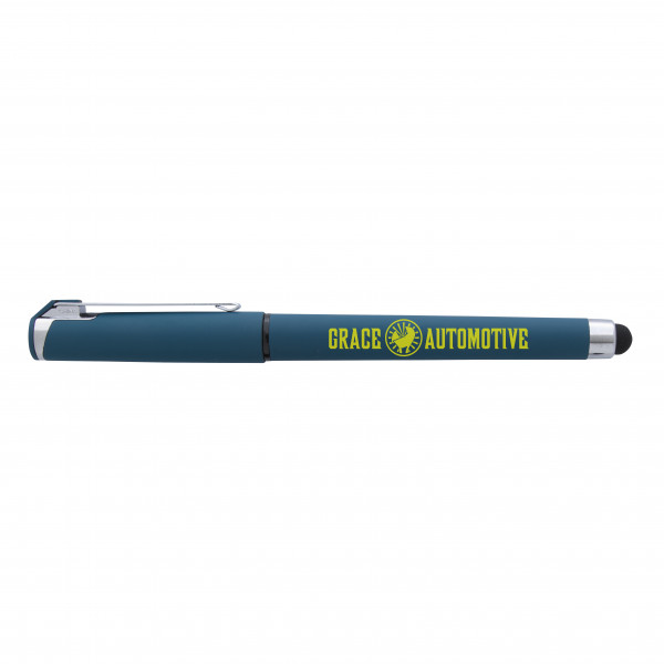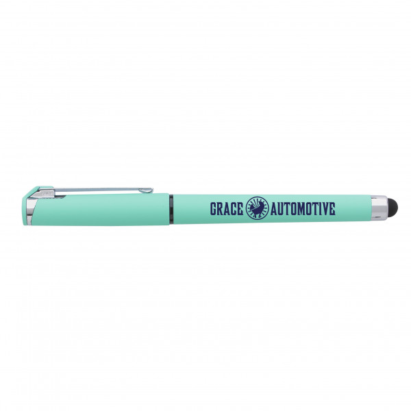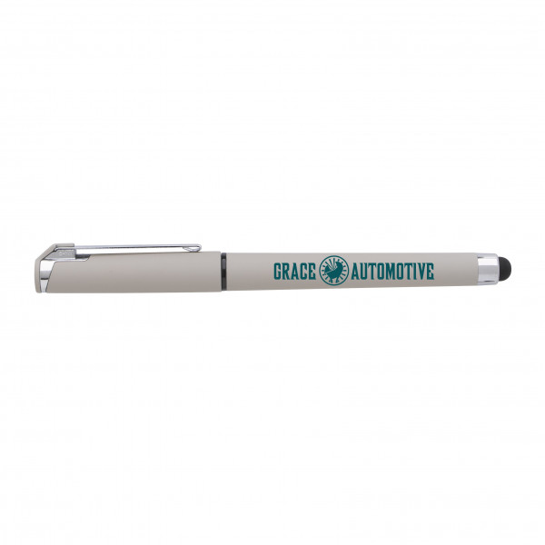 This weighted gel pen offers a comfortable, premium writing experience with a soft-touch feel and sleek chrome accents. Designed as a versatile promotional product that can be custom branded, it combines everyday functionality with modern style, including a built-in stylus for use on touchscreens.