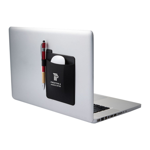 - Adhesive backing attaches securely to the back of a laptop for convenient travel