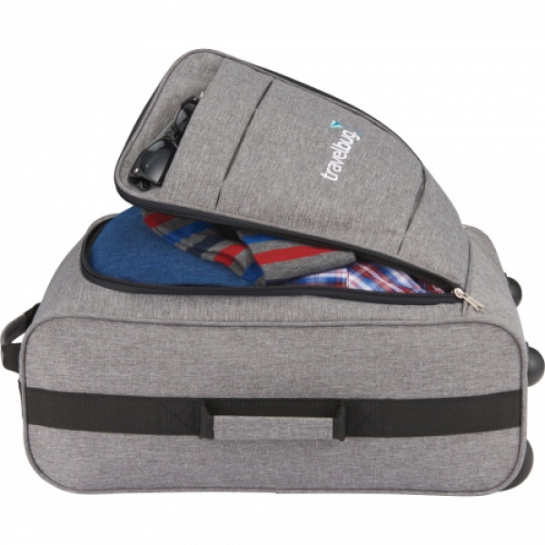 The Heather 20" Upright Luggage features a large open main compartment, front zippered pocket and an adjustable trolley handle.