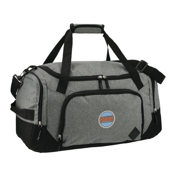 The Graphite 21" Weekender Duffel Bag includes a large u-shaped opening for easy loading and unpacking. This custom duffel bag includes a removable adjustable shoulder strap for easy carrying. The Graphite 21" Weekender Duffel Bag provides ample space for all your items with an additional side pocket and front zippered pocket with signature Graphite patch.