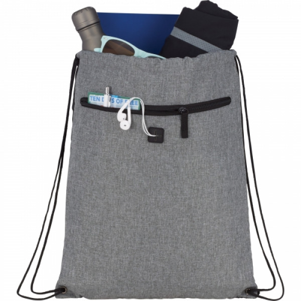 The Graphite Drawstring Sportspack w/ Earbud Port features a drawstring closure and earbud port so you can keep your electronics safe will listening to music. Disclaimer: There may be minor variations in color of the actual product due to the nature of the fabric dyes, weaves and printing.