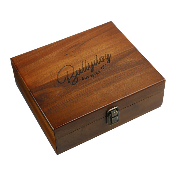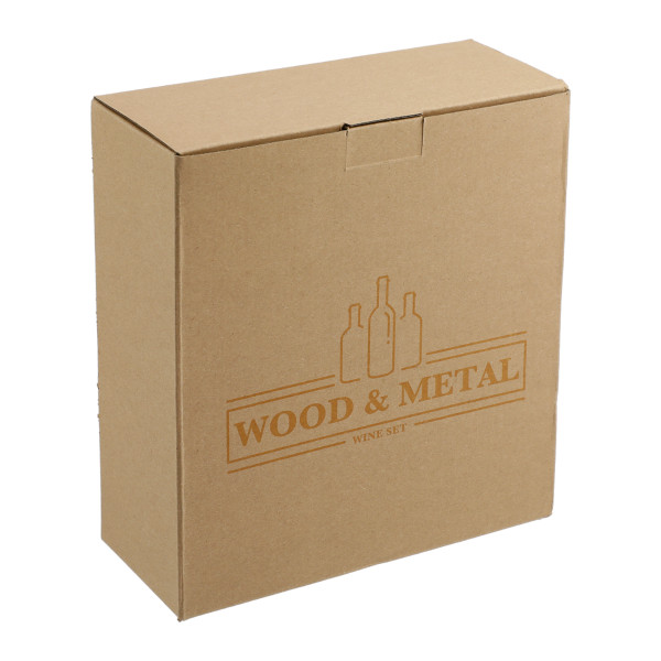 The nine-piece Graze Wood and Metal Wine Set features a polished acacia wood case with metal accents for compact storage.