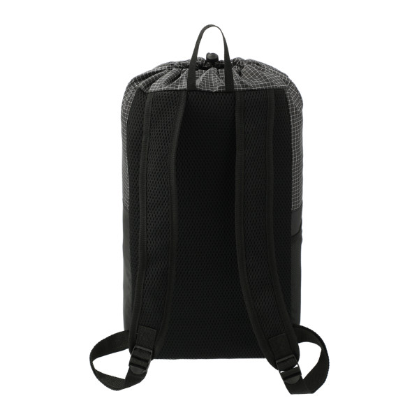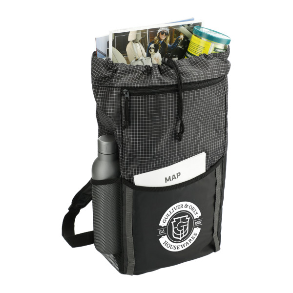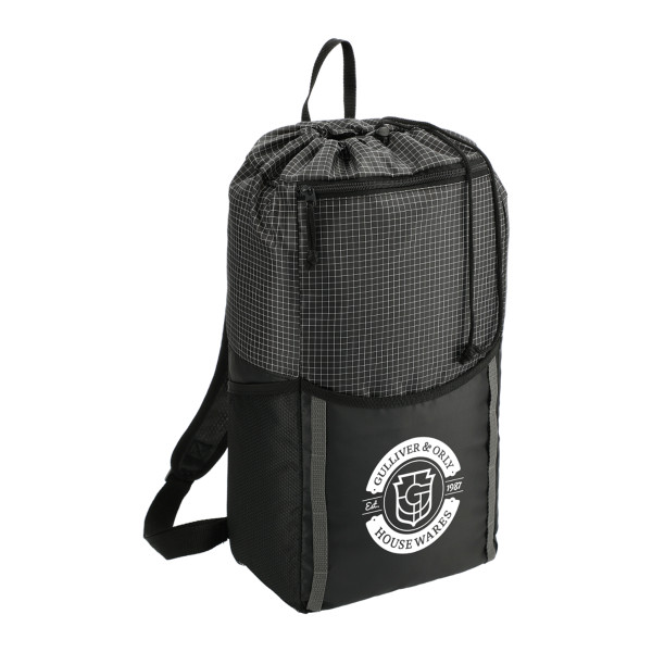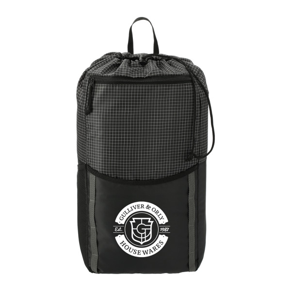 The Grid 14L Drawstring Backpack features a drawstring closure main compartment, front slash pocket, side water bottle pocket, and adjustable shoulder straps for whatever adventures you have planned.