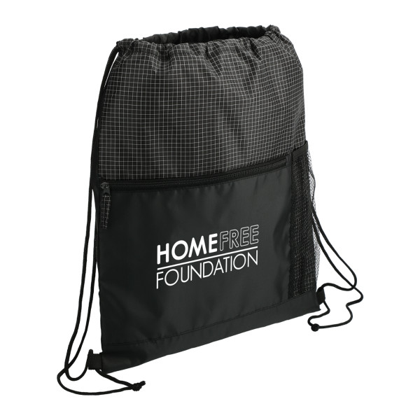 The Grid Drawstring features a drawstring closure main compartment and a zippered front pocket.
