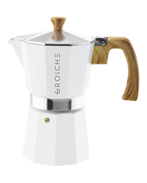 The GROSCHE Milano 6-Cup Stovetop Espresso Maker is a classic Italian-style moka pot designed for coffee enthusiasts seeking rich, café-quality espresso at home. Crafted from durable, food-grade anodized aluminum, it features a heat-resistant silicone handle and knob for safe handling. The Milano is compatible with gas, electric, and propane stovetops (excluding induction) and includes a certified Italian safety valve to prevent pressure buildup. With a capacity of 9.3 oz (275 ml), it brews up to six espresso shots, making it ideal for sharing or enjoying multiple servings. Easy to use and clean, the Milano offers a convenient and stylish solution for espresso lovers.