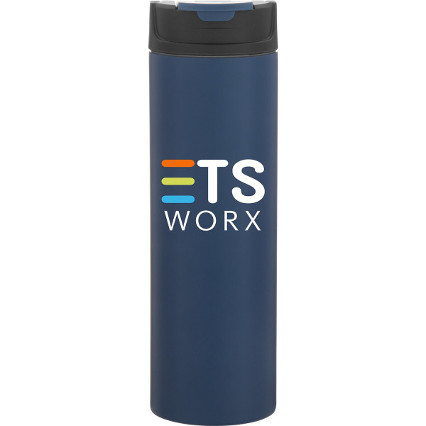 The Gauge 20.9 oz Thermal Bottle is a sleek and functional companion for daily commutes, workouts, or office hours. Crafted from double-wall stainless steel with vacuum insulation, it keeps beverages hot or cold for hours. The threaded lid with snap closure ensures a secure seal, while the wide sip opening allows for smooth drinking or easy pouring. A modern matte finish and integrated carrying handle add style and convenience. This promotional product is perfect for custom branding that keeps your logo front and center wherever it goes.