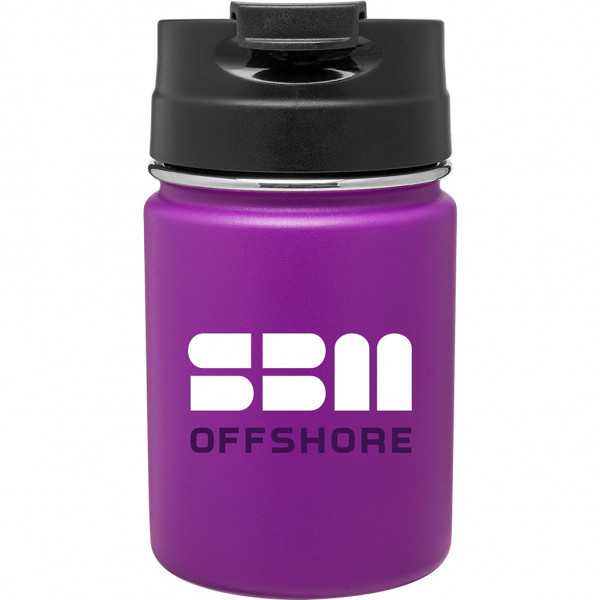 The h2go Nexus 8 oz thermal tumbler is a sleek, compact solution for enjoying coffee, espresso, or tea on the go. Crafted from durable double wall 18/8 stainless steel with copper vacuum insulation, it maintains drink temperatures for hours. The threaded lid with a snap closure offers a secure, spill-resistant seal, while the powder coated finish adds a modern touch and easy grip. Perfect as a promotional product, this tumbler can be custom branded to keep your logo in hand and on display every day.