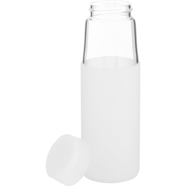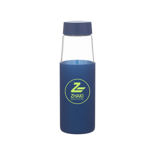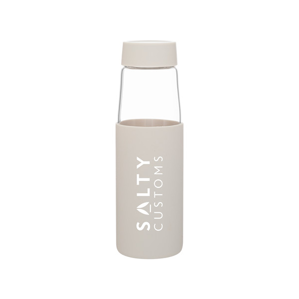 The h2go Sloan 20 oz glass bottle offers a sleek and modern way to stay hydrated. Crafted from durable borosilicate glass, it features a single-wall design and a threaded lid for a secure seal. The matching silicone sleeve adds grip and helps protect against minor bumps, making it perfect for home, office, or travel. This stylish bottle is an ideal promotional product, ready to be customized with your brand for a clean, contemporary look that makes a lasting impression.