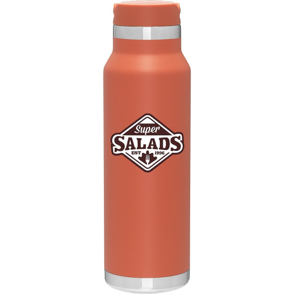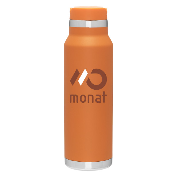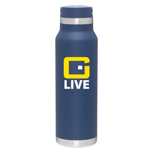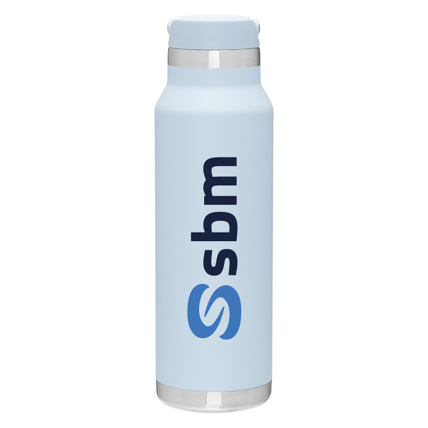 The h2go Voyager 25 oz Thermal Bottle is designed for durability, style, and performance—making it the perfect companion for daily routines, workouts, commutes, or outdoor adventures. Its double-wall 18/8 stainless steel construction with copper vacuum insulation ensures your drinks stay hot or cold for hours. A threaded insulated lid with an integrated carrying handle adds functionality, while the sleek powder coated finish and polished stainless steel accents elevate the look. Ideal as a promotional product, the Voyager can be custom branded to showcase your logo with lasting impact.