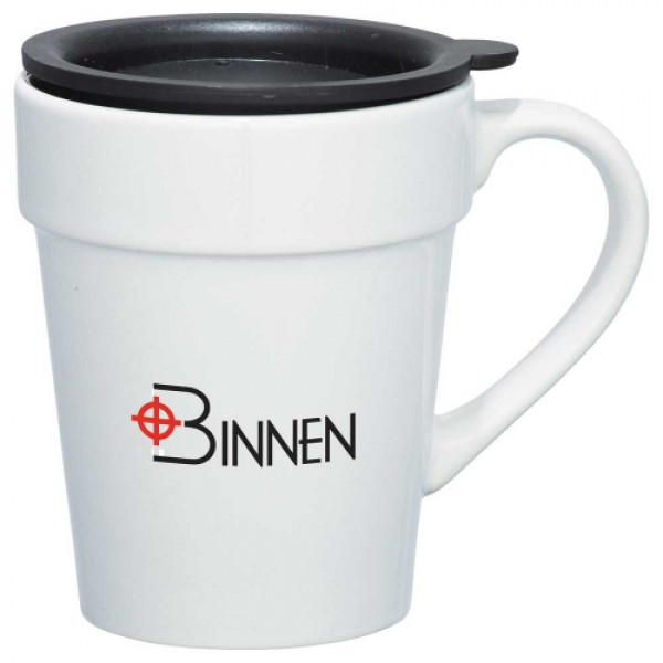 ::The Habanera 10oz Ceramic Mug is a tapered design mug with a white interior accent. ::It also includes a handy press-on plastic lid with a drink opening. ::See General Information page for special ceramic item handling charge. ::Hand wash only and follow any included care guidelines.