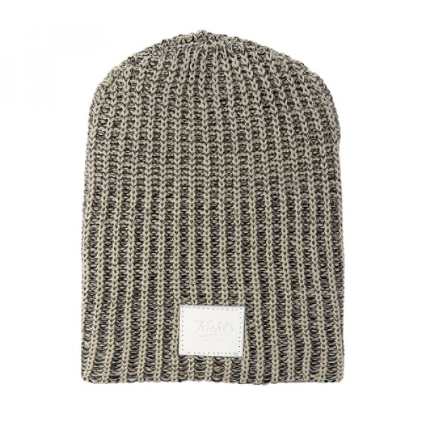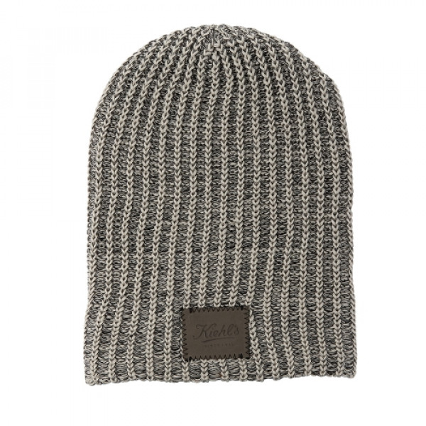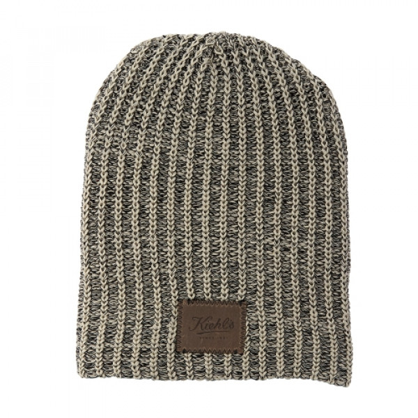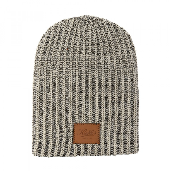 Haberdasher 9" x 12" knit beanie with leather patch. Choose from 6 domestic, USA Made, leather colors and customize to match your company logo to create something truly unique. Colors and distress marks will vary