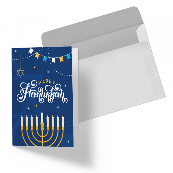Happy Hanukkah Design - 5" x 7" Double Sided Folded Notecards with Printed Envelopes - 110#