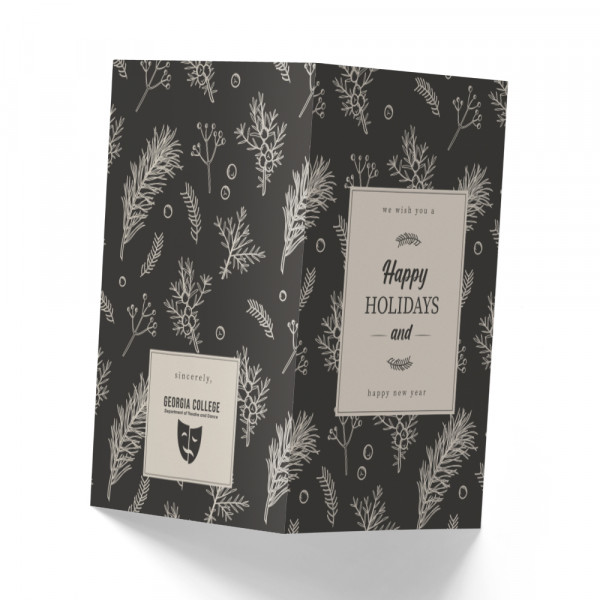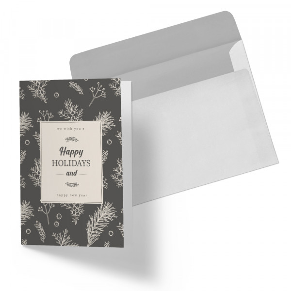Happy Holidays Black and Cream Design - 5" x 7" Double Sided Folded Notecards with Printed Envelopes - 110#