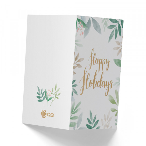 Happy Holidays Leaves Design - 5" x 7" Double Sided Folded Notecards with Printed Envelopes - 110#
