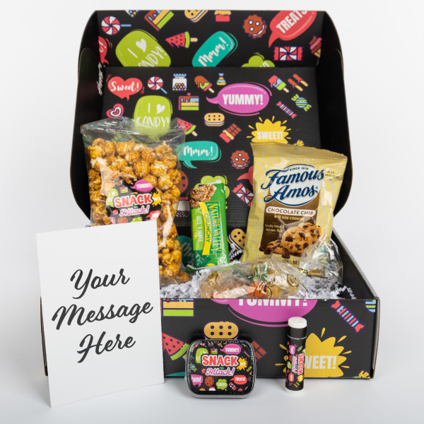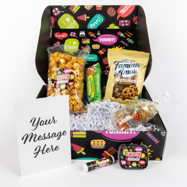- Set Includes #MS22 Mug Stuffers, #GPS Gourmet Popcorn Single, #ST02 Small Tin, #GRANOLABAR1 Individually Wrapped Granola Bar, #LB0 Lip Moisturizer, Famous Amos Chocolate Chip Cookies, Crinkle Paper And Customizable Card.