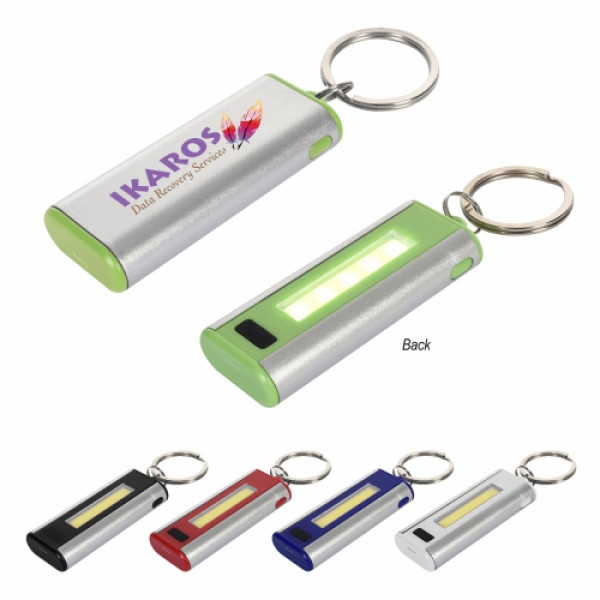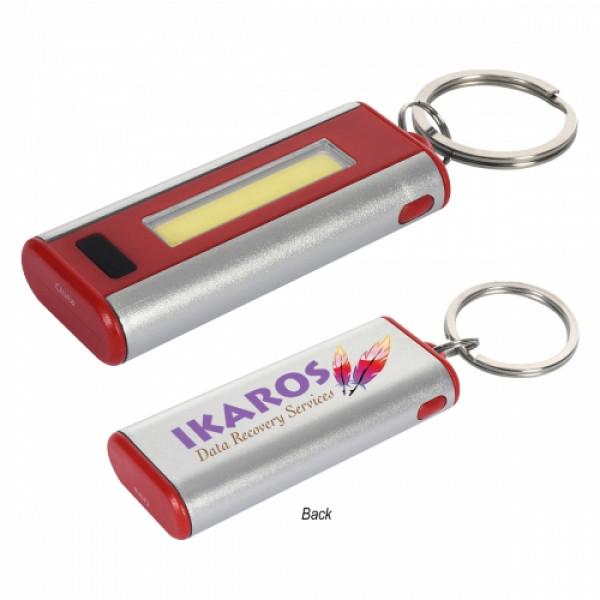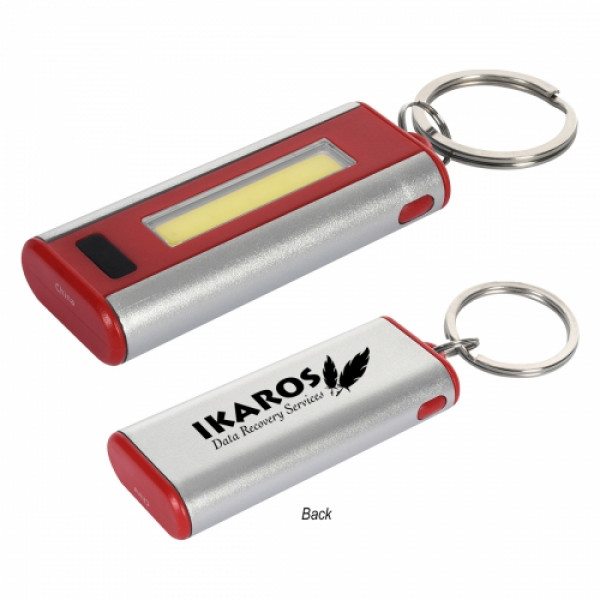 ::Extra Bright LED Light::Push Button To Turn Light On/Off::Four Light Settings – High, Low, Flashing and SOS::Split Ring Attachment::Button Cell Batteries Included