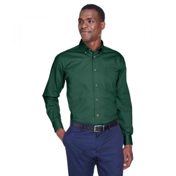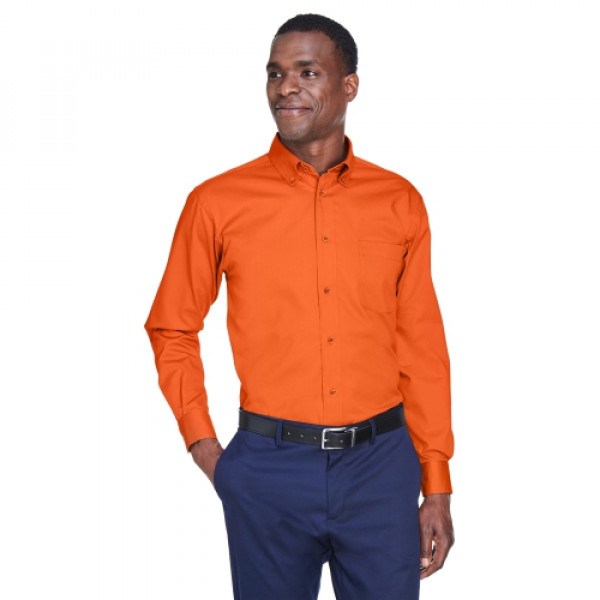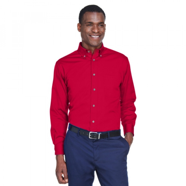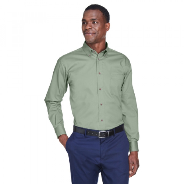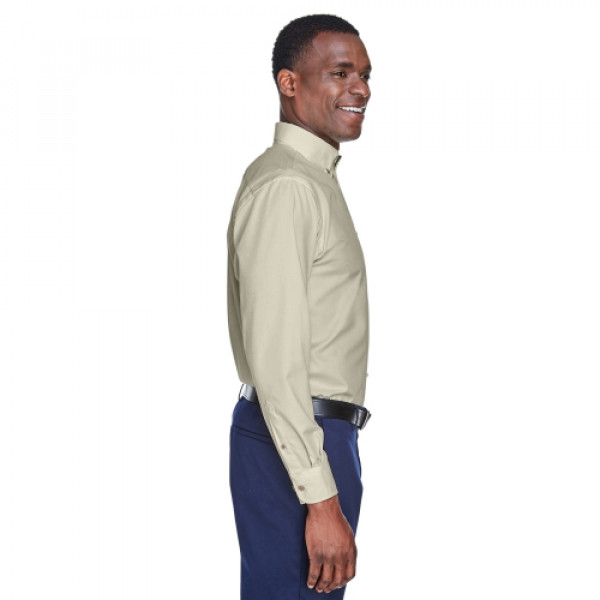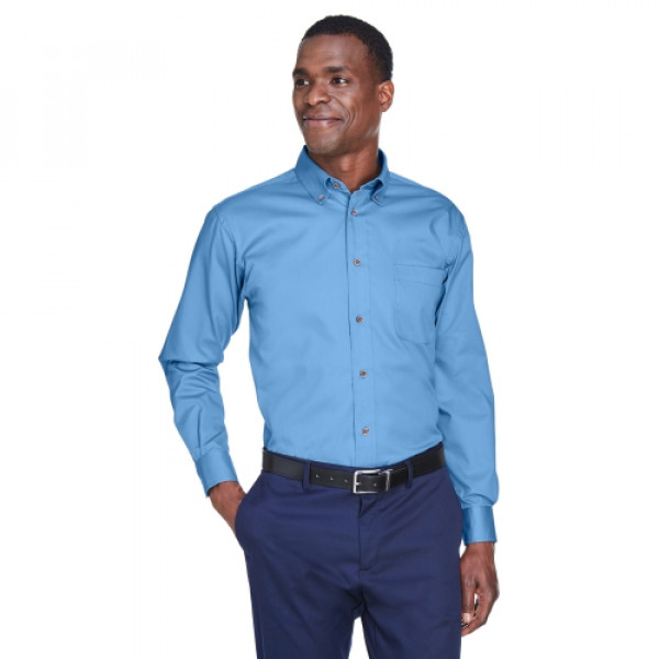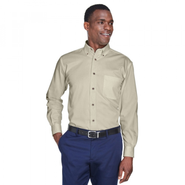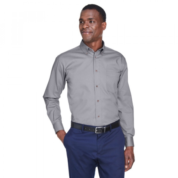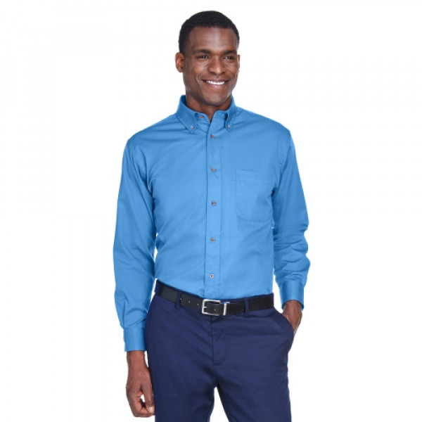 This men's long-sleeve twill shirt combines durability with easy maintenance, making it ideal for both professional and casual settings. Its stain-release and wrinkle-resistant properties ensure a polished appearance throughout the day.