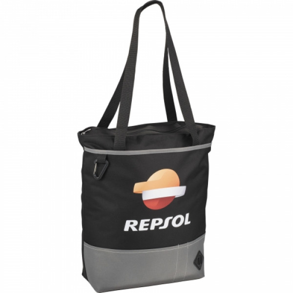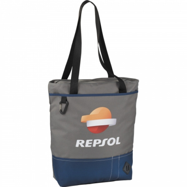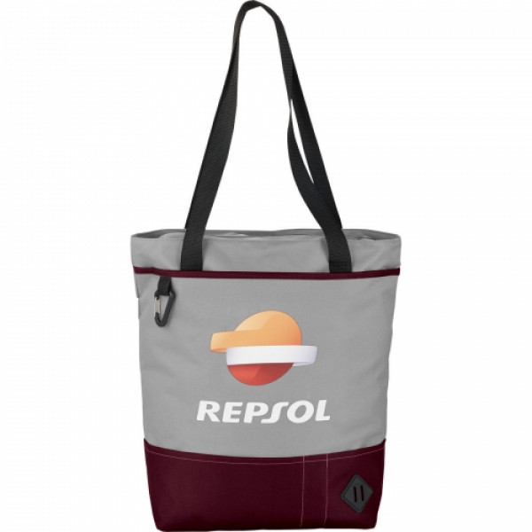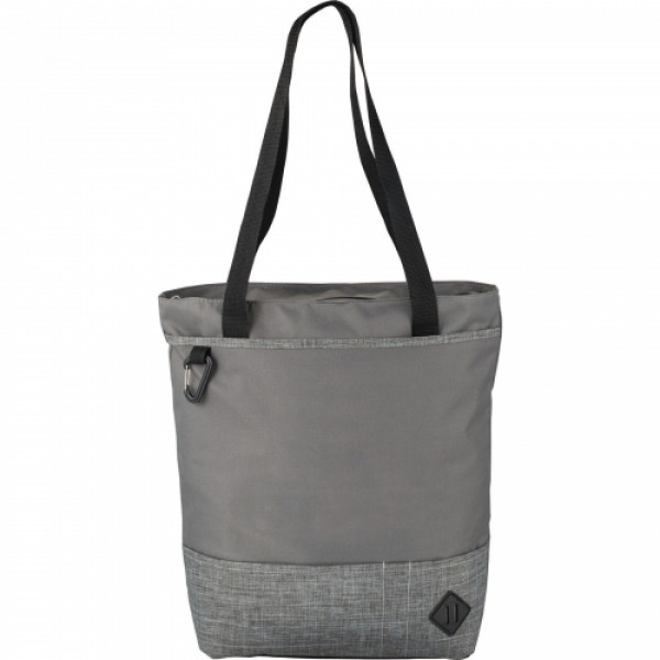 ::This is the ideal trendy convention tote. ::Zippered main compartment. ::Velcro® closure front slash pocket. ::Phone and organizational pockets running along the base of the tote including a pen slot. ::D-ring and added corner detail to hang keys or water bottle. ::14.5" handle drop height.