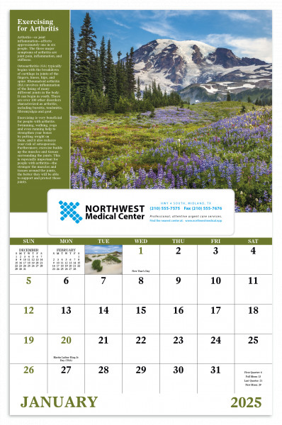 Get your healthy on. Each month you'll be treated to a beautiful landscape image and a tip for improving your health.