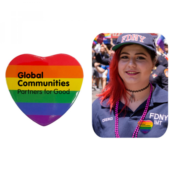 Show your support and pride with this vibrant rainbow button. Perfect for parades, events, or everyday wear, this eye-catching button is a simple yet powerful way to express inclusivity and solidarity. Its durable construction and secure pin backing ensure it stays in place while you celebrate and advocate.