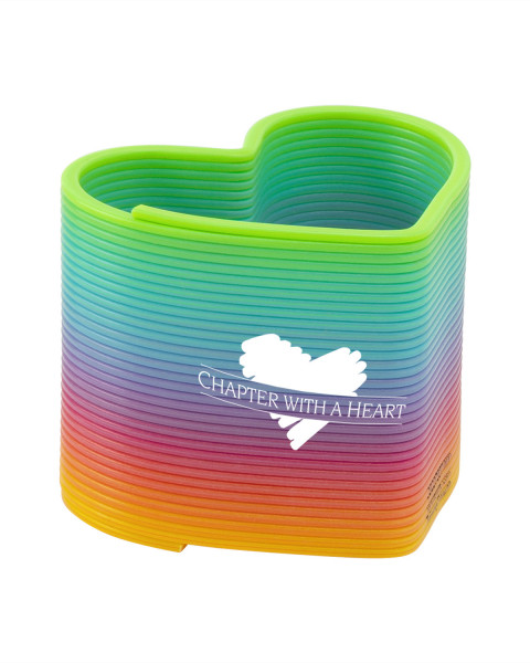 Add some heart-shaped fun to your promotional giveaways with the Prime Line Heart Shape Spring Thing Toy. This playful PVC spring can travel down stairs endlessly, making it a unique item that can be customized, decorated, or branded to showcase your message. Perfect for adding a cheerful twist to events, promotions, or giveaways.