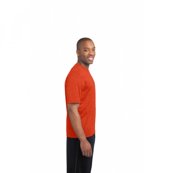 Ultra breathability meets an excellent snag-resistant, heathered appearance at an equally great value.::3.8-ounce, 100% polyester jersey::Removable tag for comfort and relabeling::Set-in sleeves
