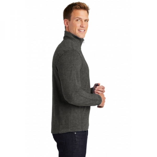 Venture out in warmth and style in this non-bulky microfleece that has a heather look for added visual appeal. An anti-pill finish helps preserve the smooth look on this trend-right style available at budget-friendly prices.::4.6-ounce, 100% polyester microfleece::Coverstitched seams::Exposed coil zippers::Open cuffs and hem