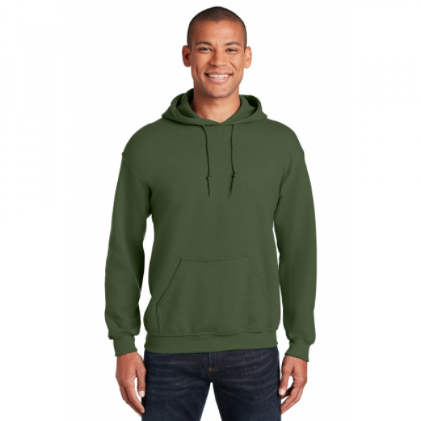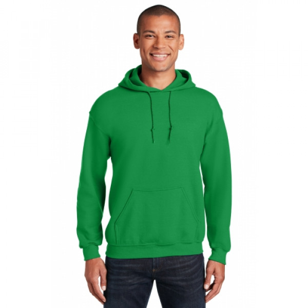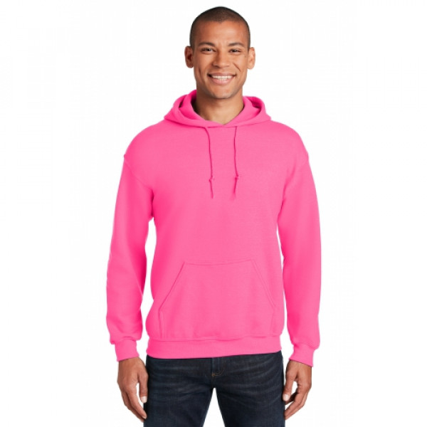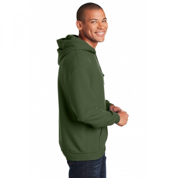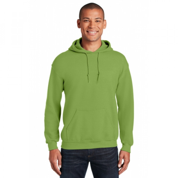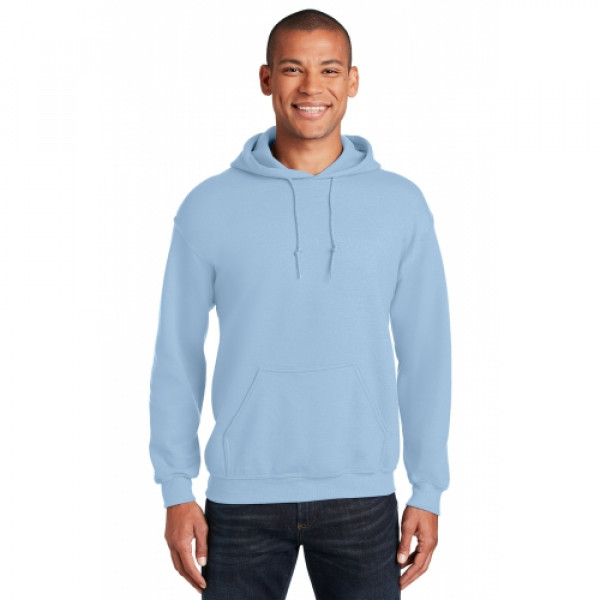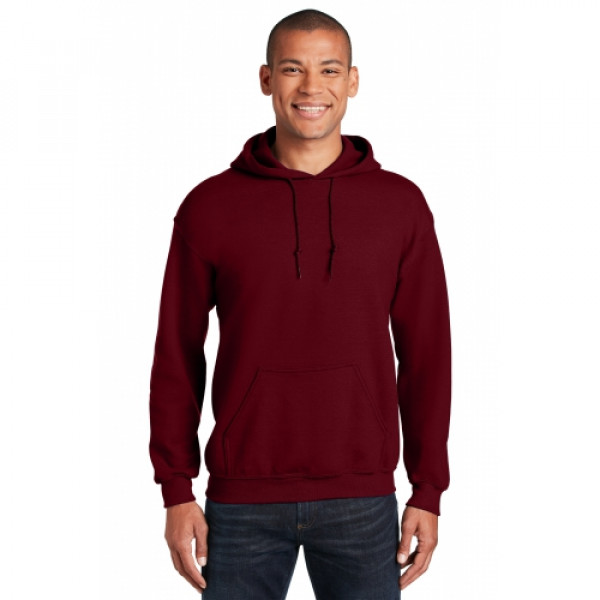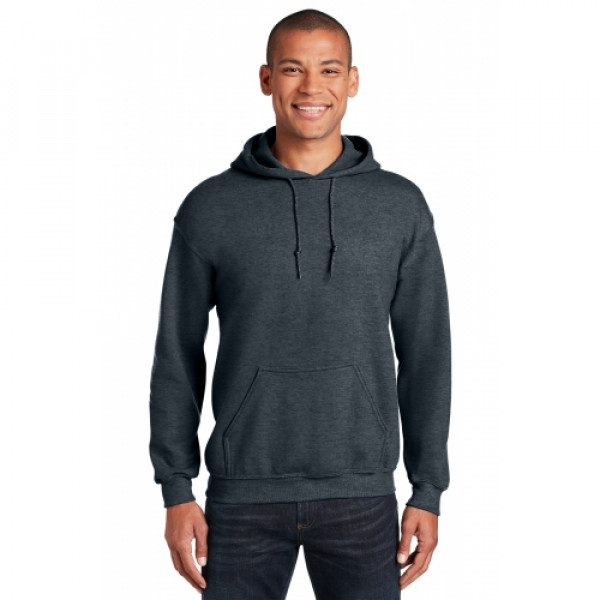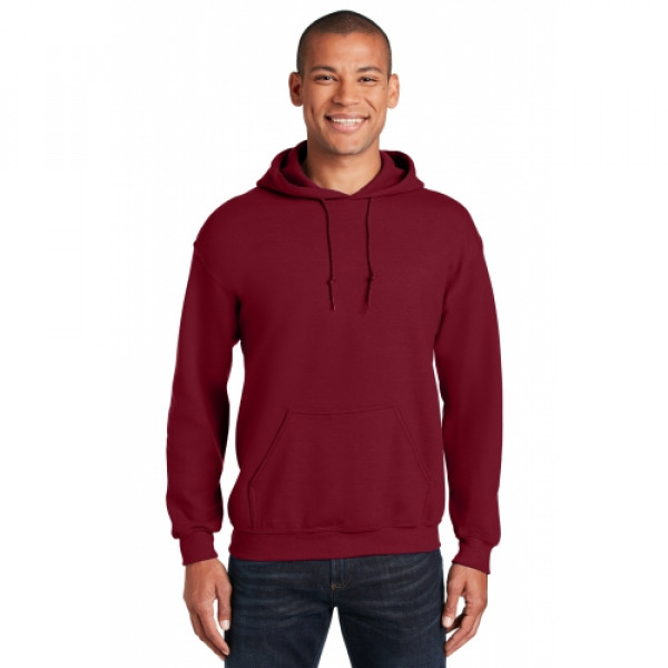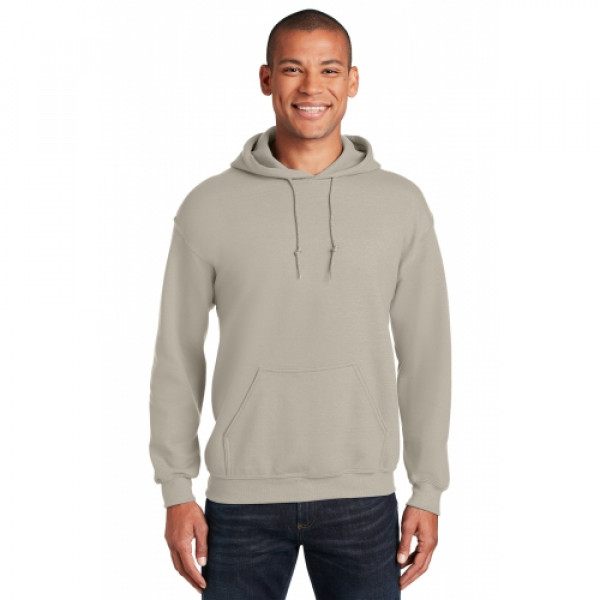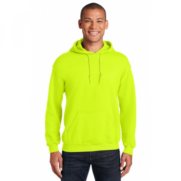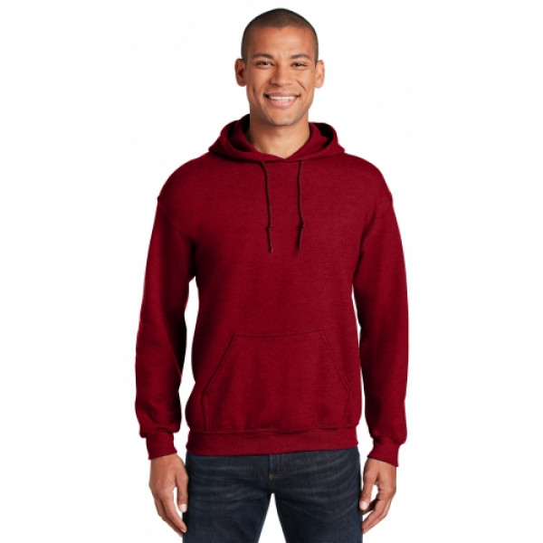 7.75-ounce 50/50 cotton/poly; no-pill Air Jet Yarn Double-needle stitching Double-lined hood with dyed-to-match drawcord Set-in sleeves Rib knit cuffs and waistband with spandex Front pouch pocket