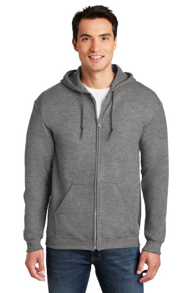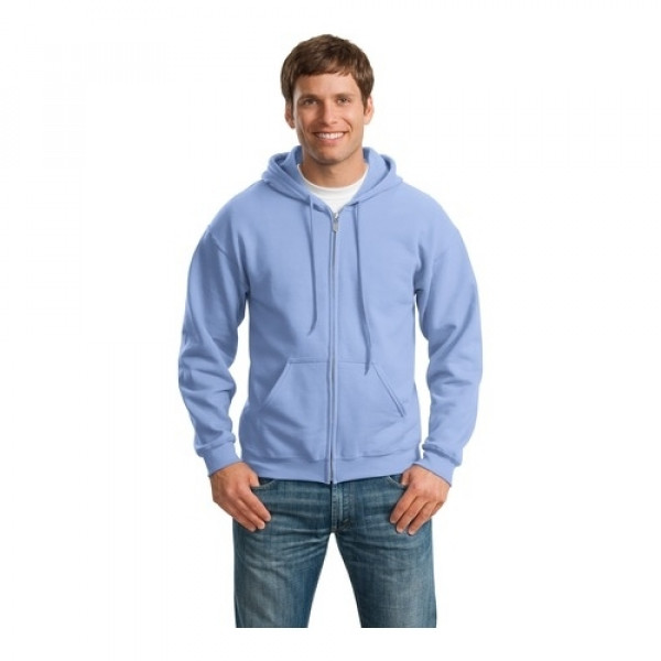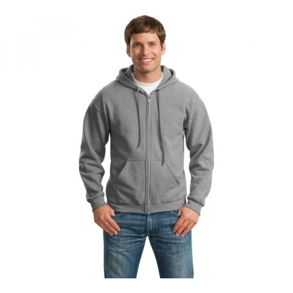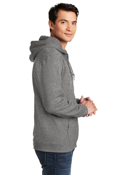 7.75-ounce 50/50 cotton/poly; no-pill Air Jet Yarn Double-needle stitching Unlined hood with dyed-to-match drawcord Set-in sleeves Rib knit cuffs and waistband with spandex Front pouch pockets