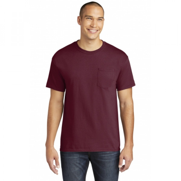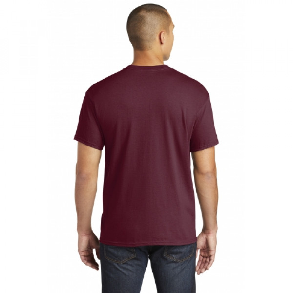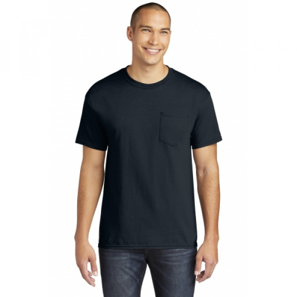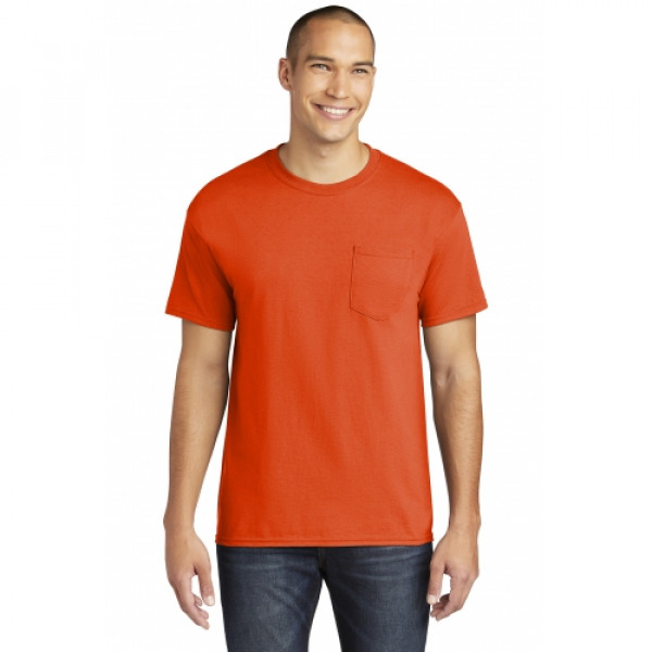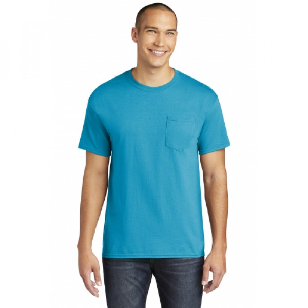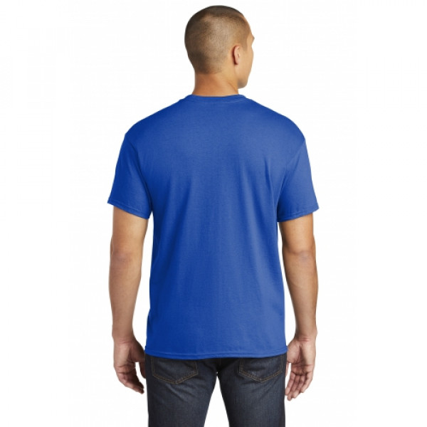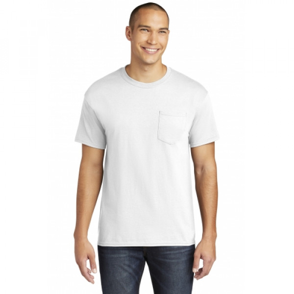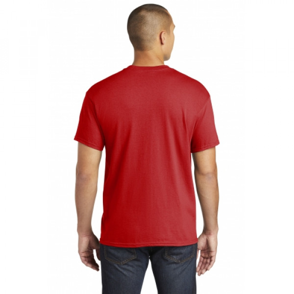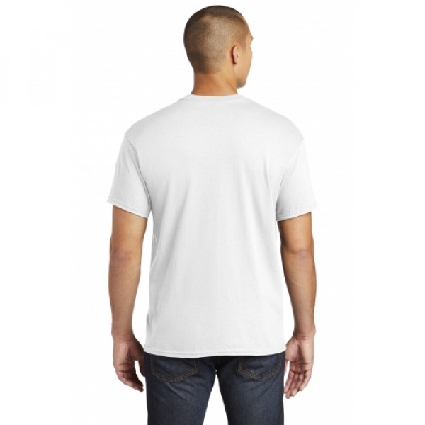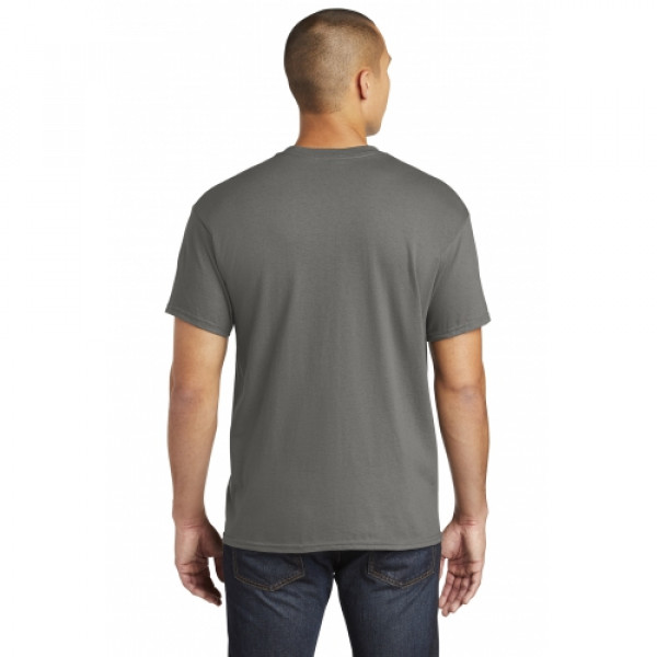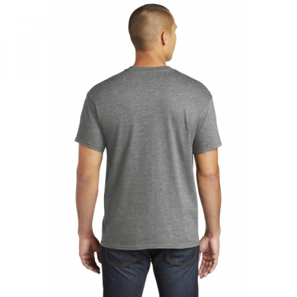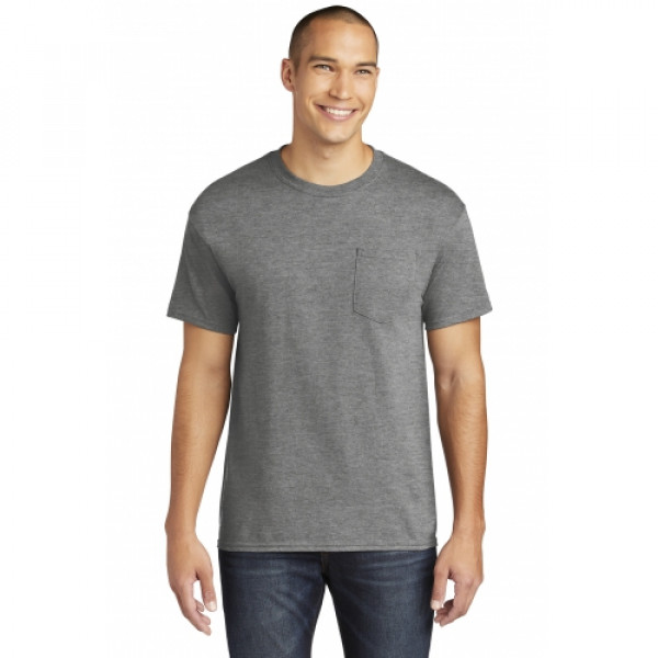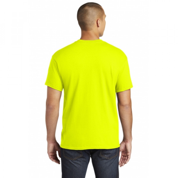 ::5.3-ounce, 100% cotton::50/50 cotton/poly (Graphite Heather, Safety Green)::90/10 cotton/poly (Sport Grey)::Taped neck and shoulders::Tearaway label::Single-needle left chest pocket::Double-needle pocket, sleeves and hem