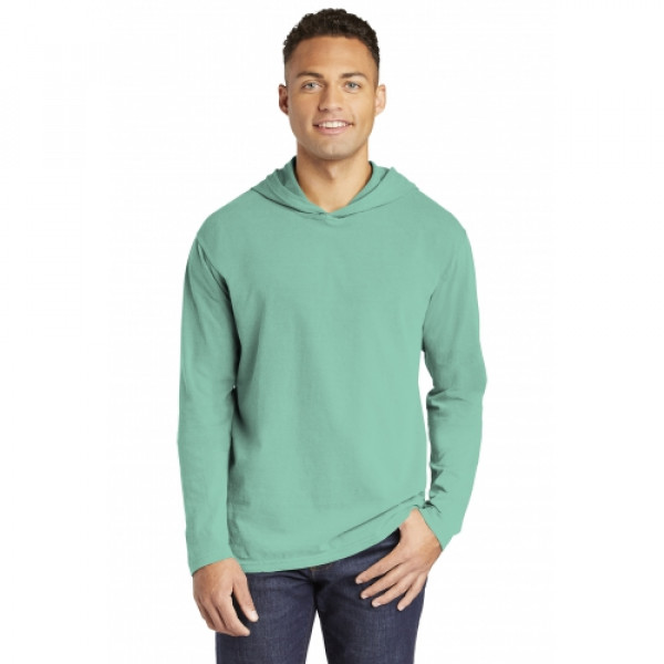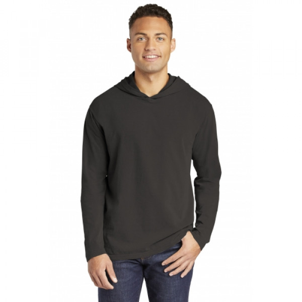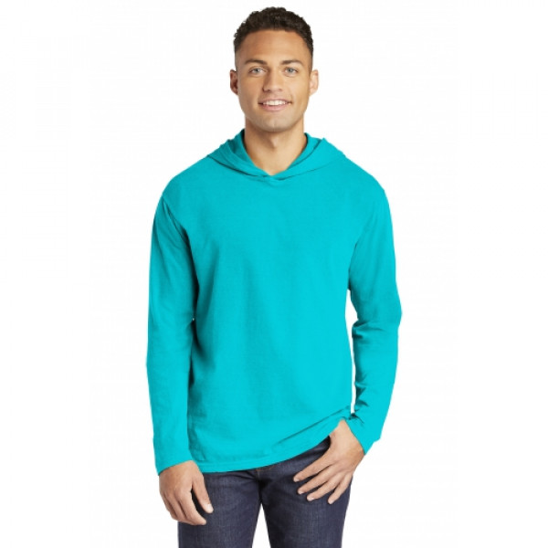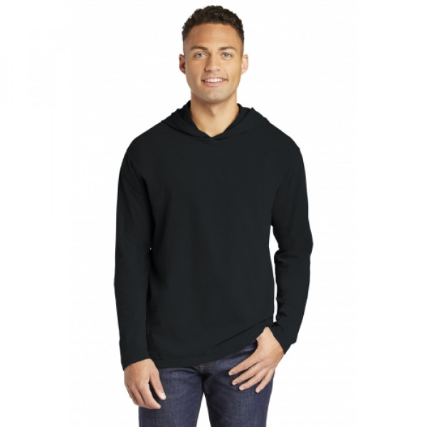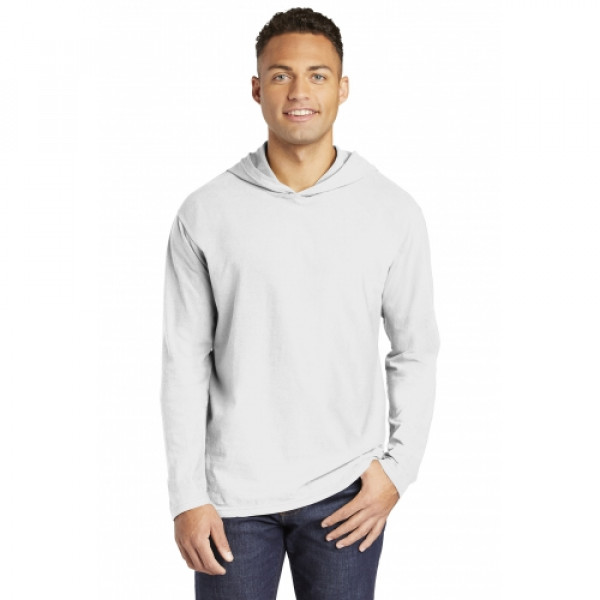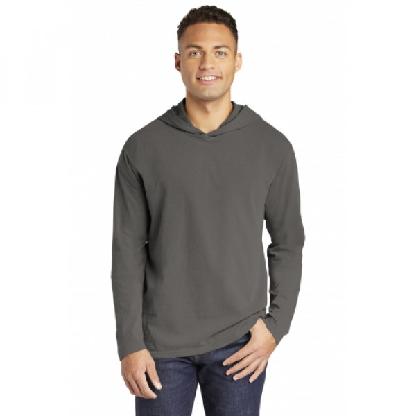 ::6.1-ounce, 100% ring spun cotton::Soft-washed, garment-dyed fabric::Relaxed, unlined hood::Taped back neck::Twill label::Double-needle neck, shoulder, sleeve and bottom hems