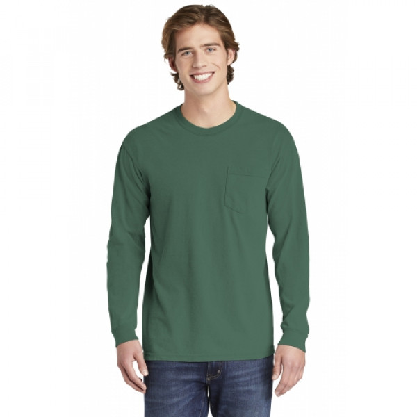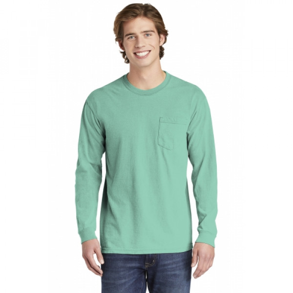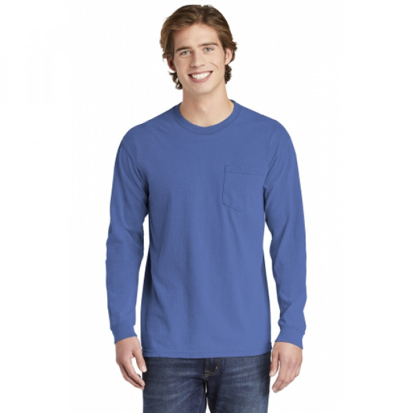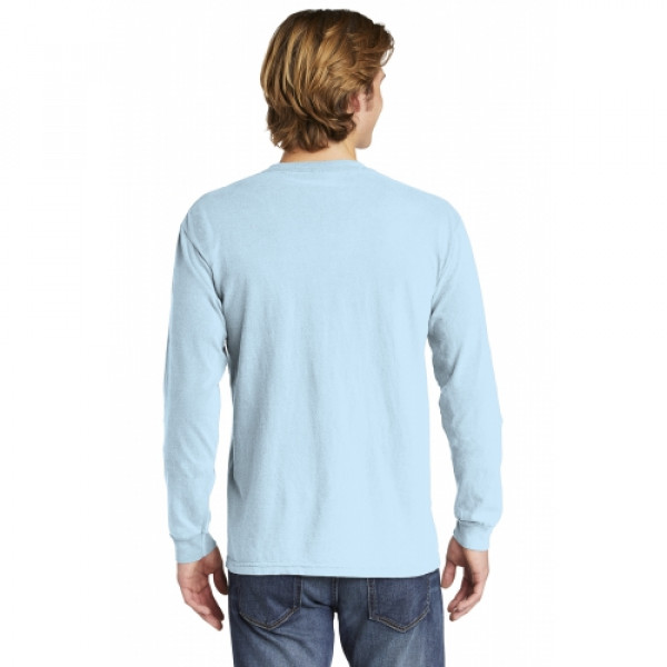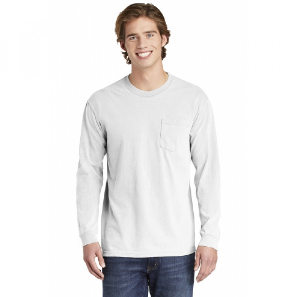 ::6.1-ounce, 100% ring spun cotton::Soft-washed, garment-dyed fabric::Double-needle collar::Twill-taped neck and shoulders::Twill label::Double-needle armhole, sleeve and bottom hems::Single-needle left chest pocket with double-needle hem::Rib knit cuffs::Double-needle bottom hem