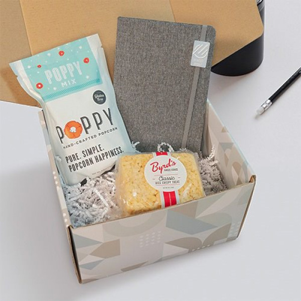 Place this in an open-plan office and watch the crowd gather. Delicious for a new hire welcome packet, boss appreciation gift, or employee-of-the-month prize (you’ve earned it).::Includes: Poppy mix popcorn, classic rice crispy treat, and libretto journal