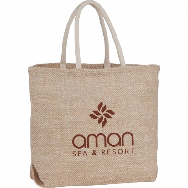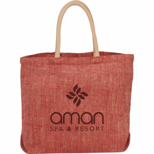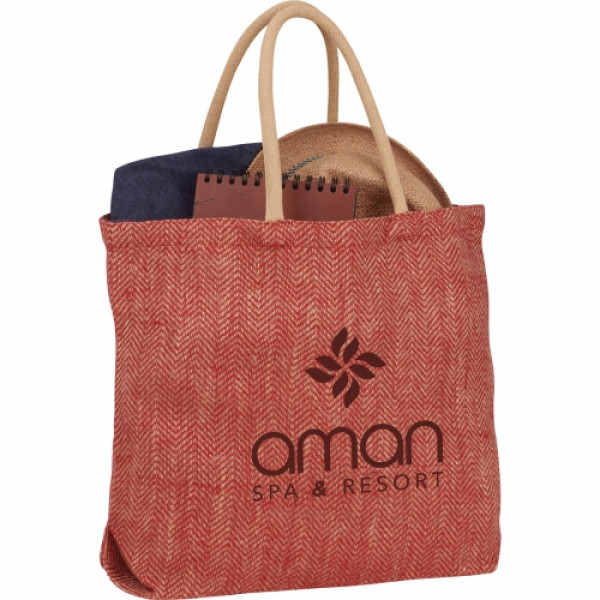 The Herringbone Jute Tote features an large open main compartment and is the perfect tote for the beach or the market.