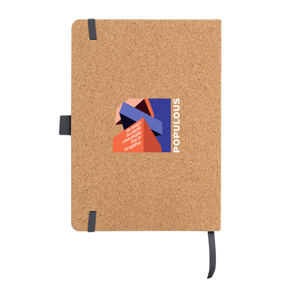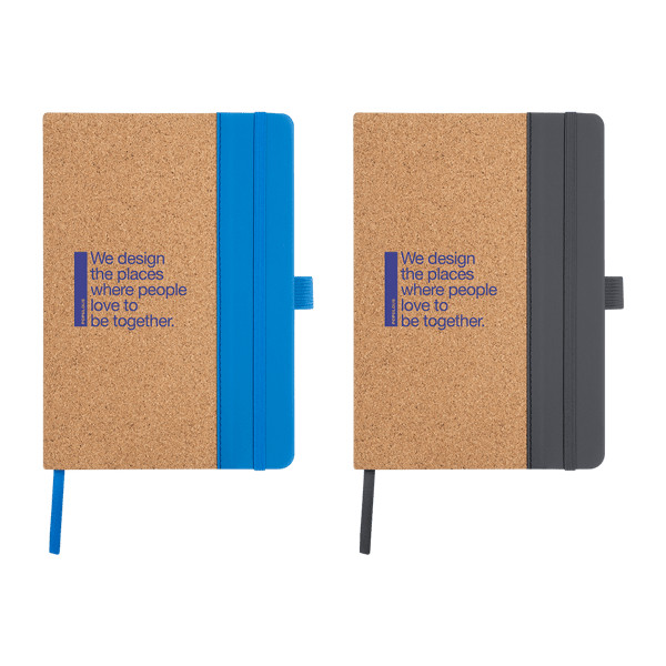 Capture your thoughts, plans, and creative sparks in sustainable style with the Hickory Cork & Recycled PU Notebook. A perfect promotional product for eco-minded brands, it can be custom decorated or branded to showcase your logo beautifully. Crafted with an FSC-certified natural cork cover and recycled PU accent, this notebook combines sophistication with environmental responsibility. Inside, you’ll find smooth, lined pages for jotting ideas, a ribbon bookmark for easy reference, and a secure elastic strap to keep your notes organized wherever you go.