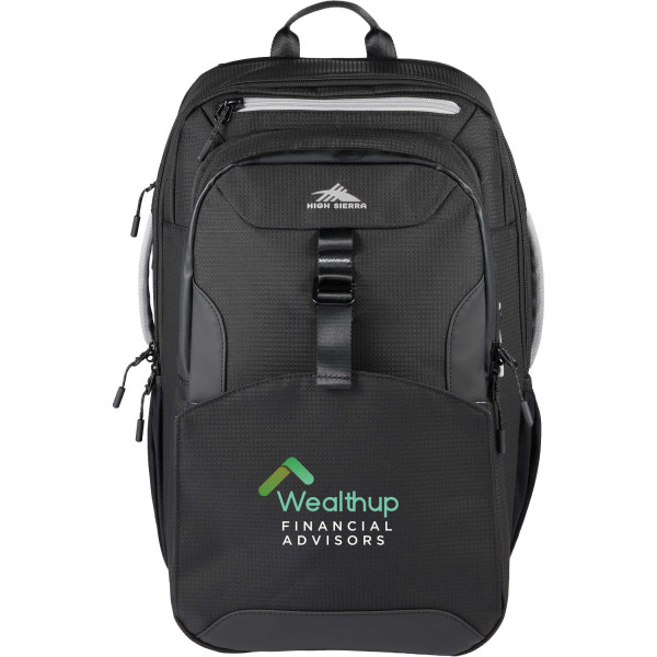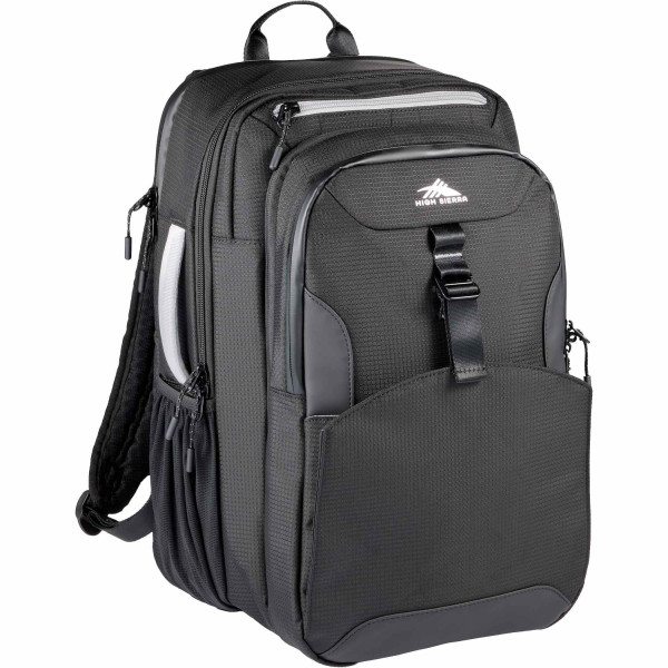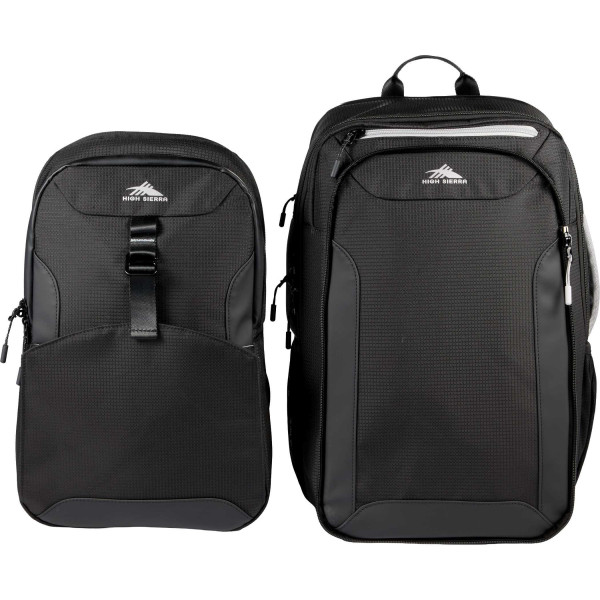 The High Sierra Hi-Life 3-in-1 Backpack is the ultimate solution for versatile travel and everyday adventures. This convertible backpack can be used as a standard backpack, a detachable daypack, or zipped together for maximum storage, making it perfect for weekend trips, daily commutes, or on-the-go lifestyles. Thoughtfully designed with a spacious main compartment featuring an interior organization panel and a dedicated laptop sleeve that fits devices up to 17", it keeps all your essentials secure and accessible. The large quick-access front pocket with buckle closure and a fleece-lined pocket for your phone or sunglasses offer added convenience, while dual water bottle pockets and multiple carry handles make hydration and grab-and-go use simple. The Stack-It™ strap allows you to effortlessly slide the bag over most upright luggage handles, making travel seamless, and structured foam shoulder straps, a padded back panel, and an adjustable sternum strap provide lasting comfort even during extended wear. This promotional product is perfect for customization, allowing your logo or branding to stand out wherever it goes.
