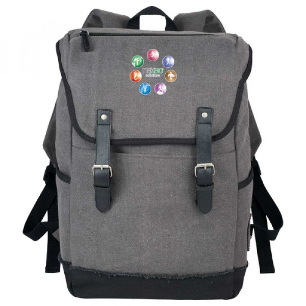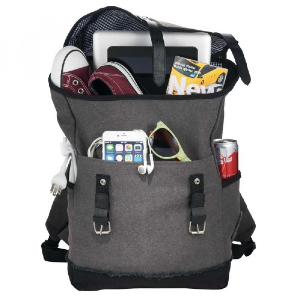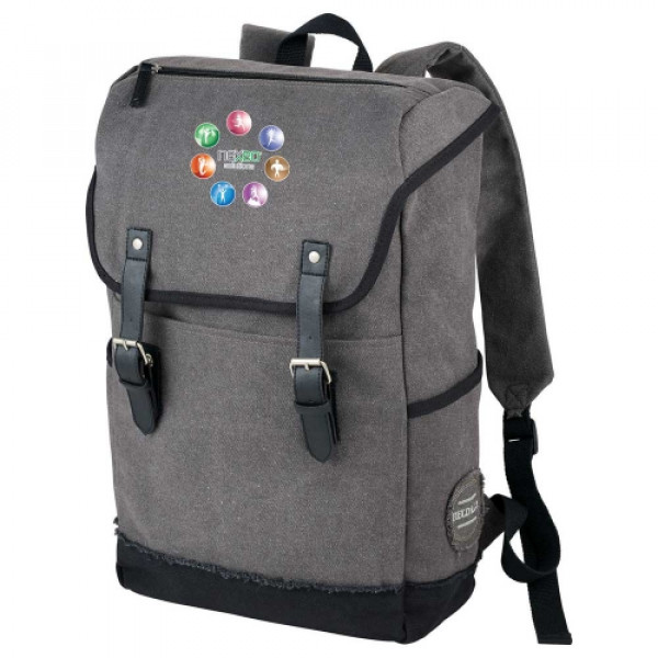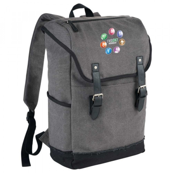 The Field & Co.® Hudson 15" Computer Backpack is part of a collection that has a gritty, urban look and feel with a modern functional design. ::Spacious open main compartment snaps shut with custom Field & Co. rivets. ::Exterior slash pockets allow you to store your water bottle or anything else you need quick access to. ::Black and white micro gingham print on the interior adds a stylish detail while the padded laptop compartment will keep your 15.6 inch computer safe.