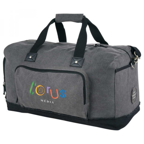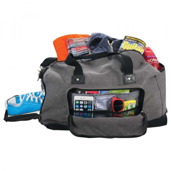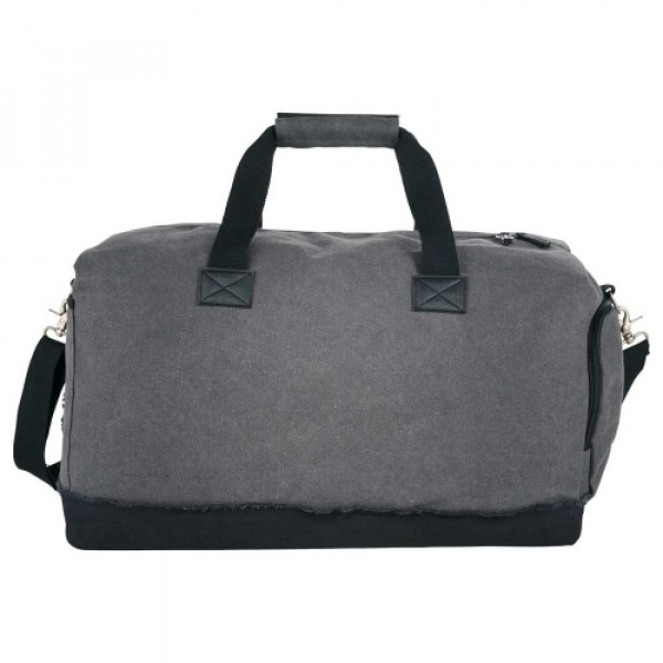 The Field & Co.® Hudson collection has a gritty, urban look and feel but with modern functional design and details. ::The Hudson duffel makes the perfect weekend getaway bag with it's large main compartment, dedicated shoe compartment and zippered front organizer pocket. ::Exterior slash pocket lets you drop in everything you need quick access to, or to store your water bottle. ::Black and white micro gingham print on the interior adds a stylish detail. ::Unique Field & Co.® branding details like the exterior cotton patch and interior label featuring the inspiration behind the collection. ::Removable shoulder strap gives you multiple carry options.